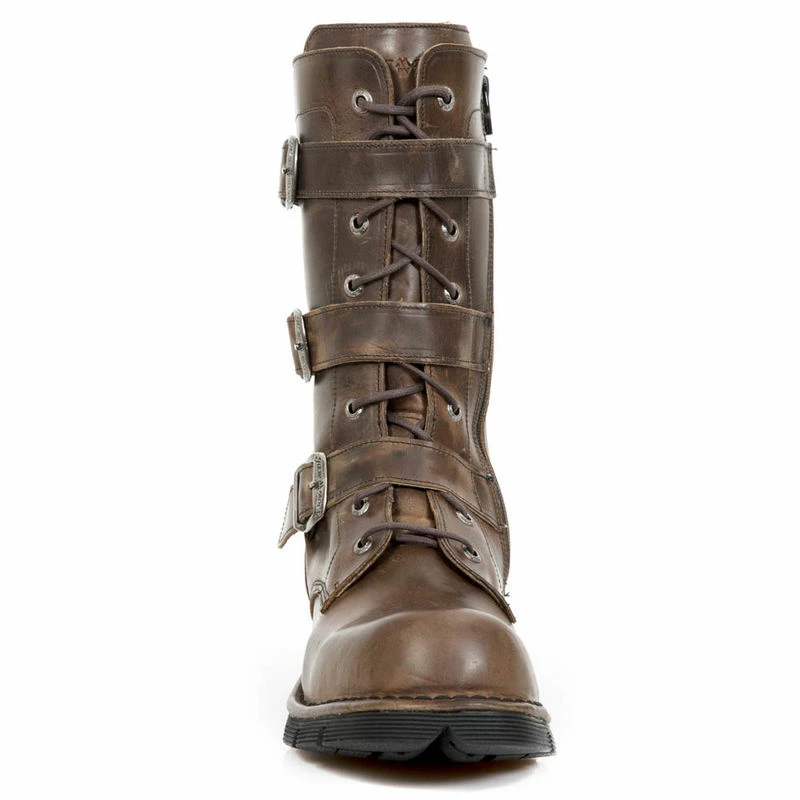 Vous aimez le style steampunk cette paire de bottines est pour vous, ce modèle de chez New Rock en cuir marron vieilli est une pure merveille simple mais avec du cachet , vous retrouverez trois boucles sur le côté extérieur de la bottine , un laçage frontal et surtout une fermeture éclair pour faciliter l’enfilage.