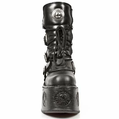 Splendide paire de bottes à semelles compensées impressionnantes, 4 sangles de réglage, laçage frontal, fermeture éclair intérieure