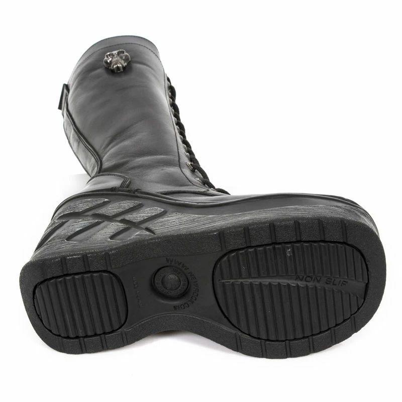 Un modèle phare de la marque, du 100% gothique avec ses semelles compensées, ses larges talons, sa petite tête de mort en métal
