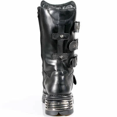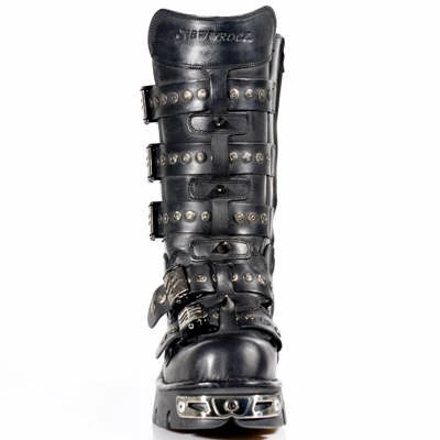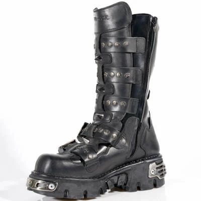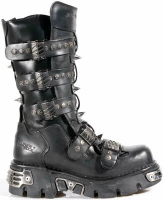 Ces bottes sont ornées de grosses sangles métalliques et de clous pointus, semelles reactor