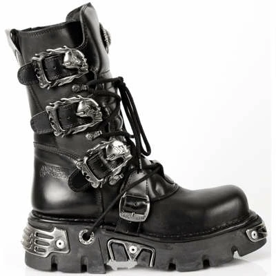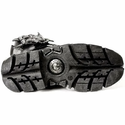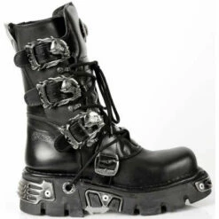 Très belles boucles métalliques « skull », semelles reactor avec fers intégrés, laçage frontal