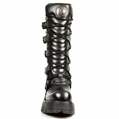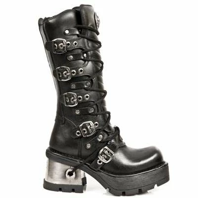Ces bottes sont la pure tradition de la marque, nombreuses boucles de serrage, grand laçage frontal, talon métallique, semellle compensées