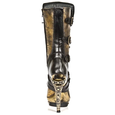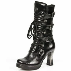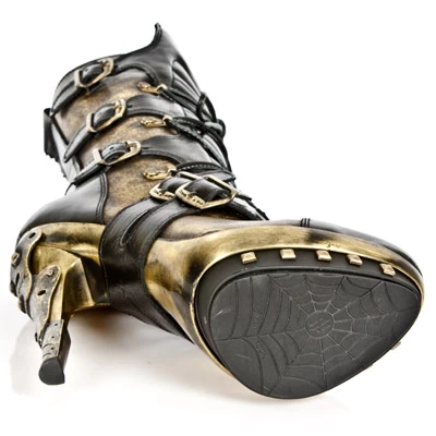 Bottes avec grand talon spécifique, nombreuses sangles de réglages, un look incroyable convenant aussi bien aux goth, qu’aux punk, steampuk ou tout simplement à celles qui veulent une paire de bottes qui ne ressemble à aucune autres