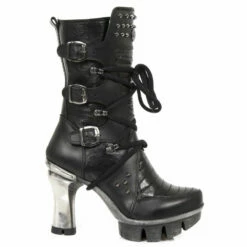 Magnifiques bottes gothiques à lacets New Rock en cuir noires. Ce talon en métal emblématique de la marque apporte l’originalité de la chaussure, ainsi que la languette en cuir matelassé, les boucles métalliques et les clous présents sur le haut de la botte. Tous ces élements font de cette chaussure un modèle hors du commun, alors franchissez le pas et faites enfin partie de la grande famille New Rock !