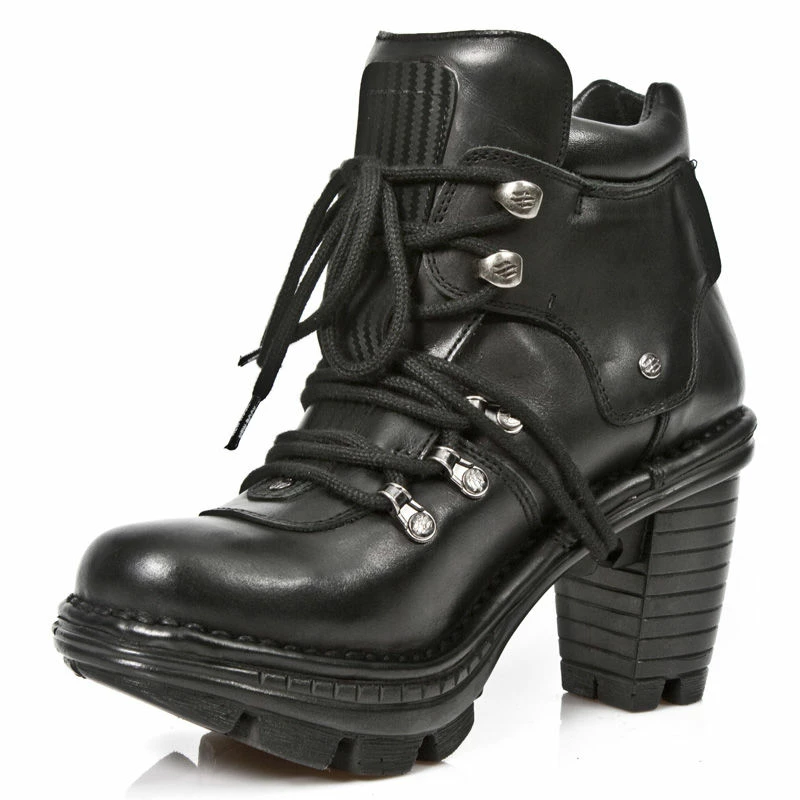 Avec ses talons incurvés, ces bottines en cuir de haute qualité sortent du lot, la finition New rock fait le reste, nul besoin d’en rajouter Dimensions