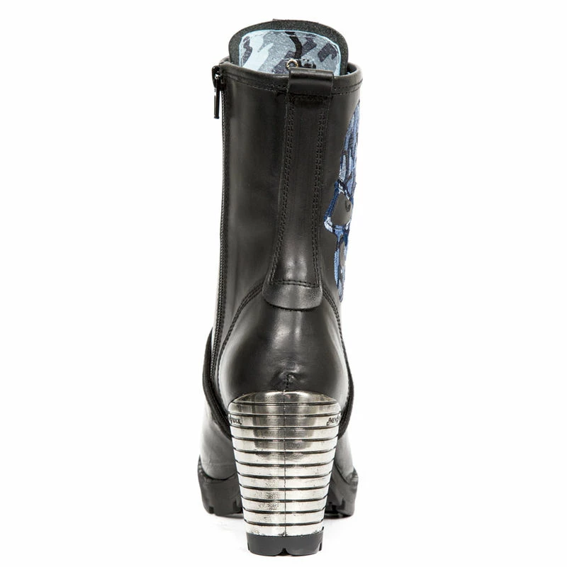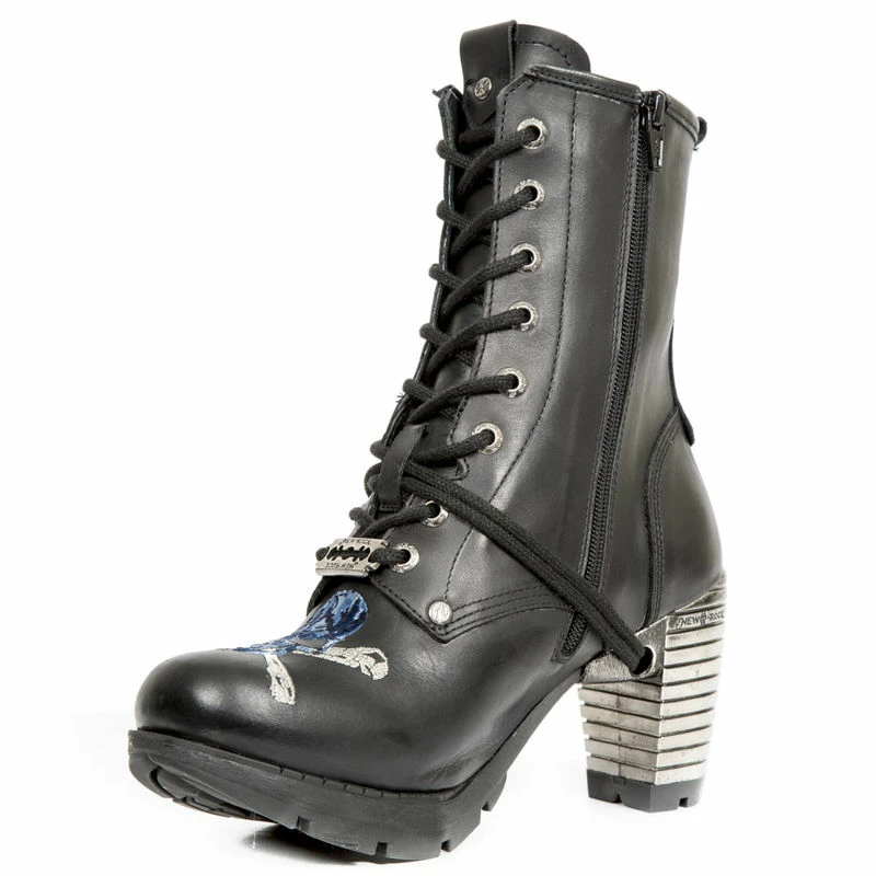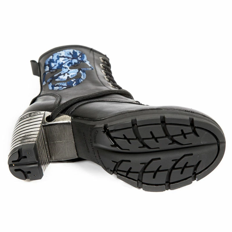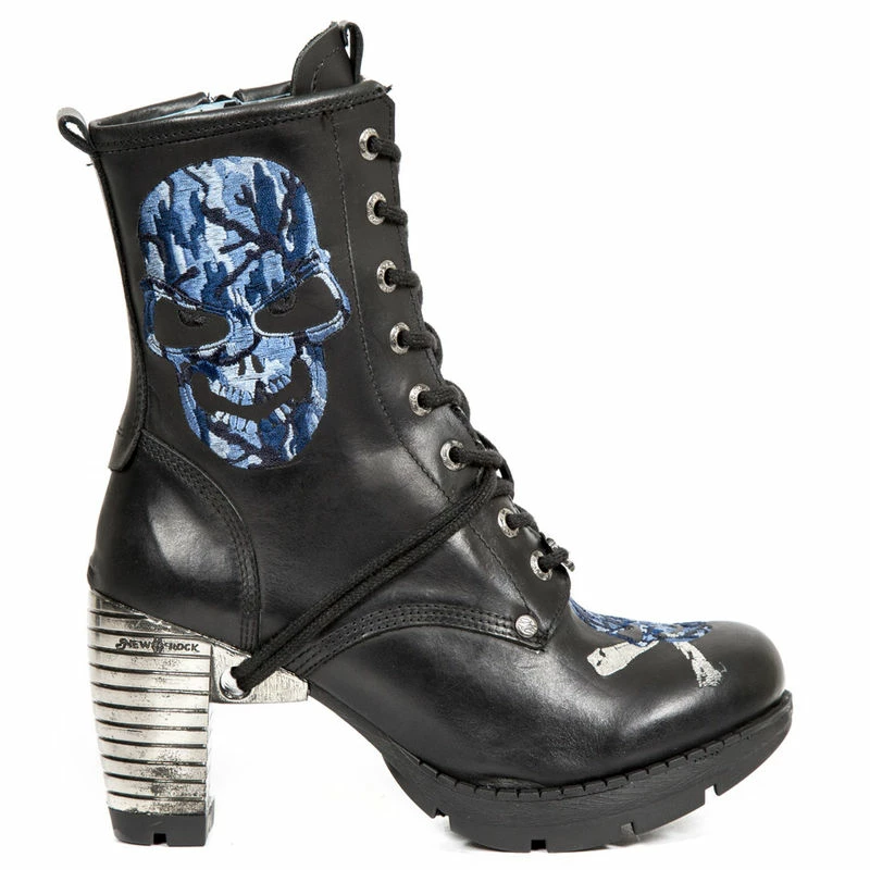 Ces bottines en cuir noir sont agrémentées de patchs têtes de mort pour un look 100% rock/goth