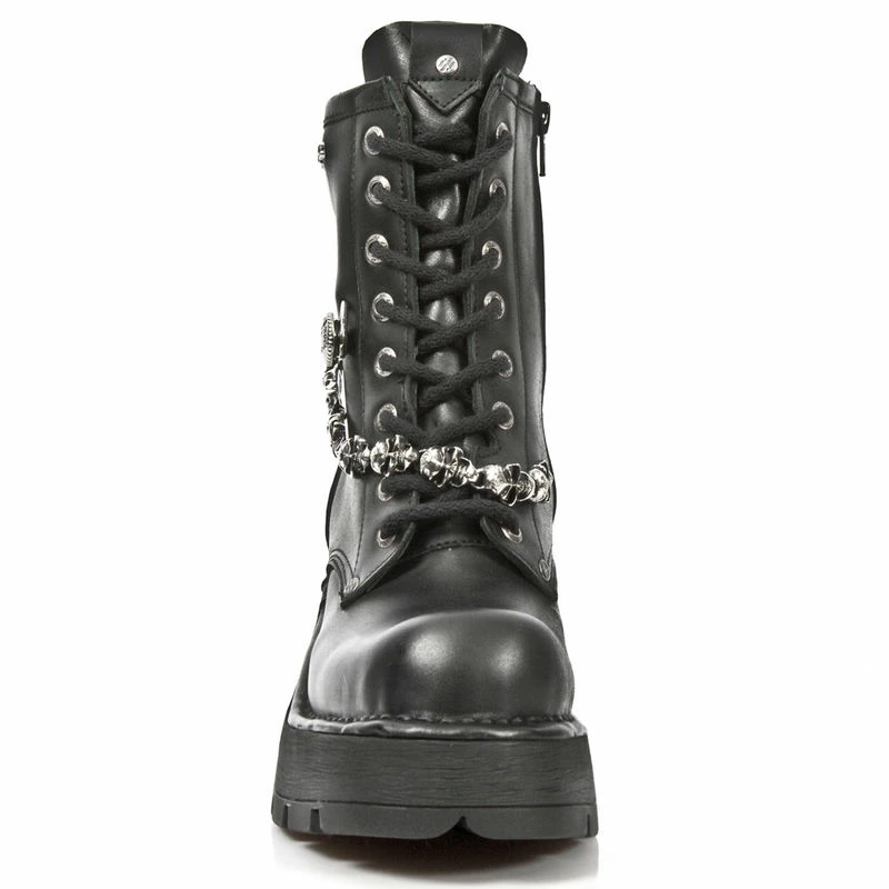 Bottines punk-rock ou goth c’est à vous de choisir , de belle qualité ces bottines vous séduiront par leurs décoration façon punk avec sa chaîne sur l’avant et son épingle à nourrice sur le coté, vous noterez aussi le talon en métal et la semelle compensé