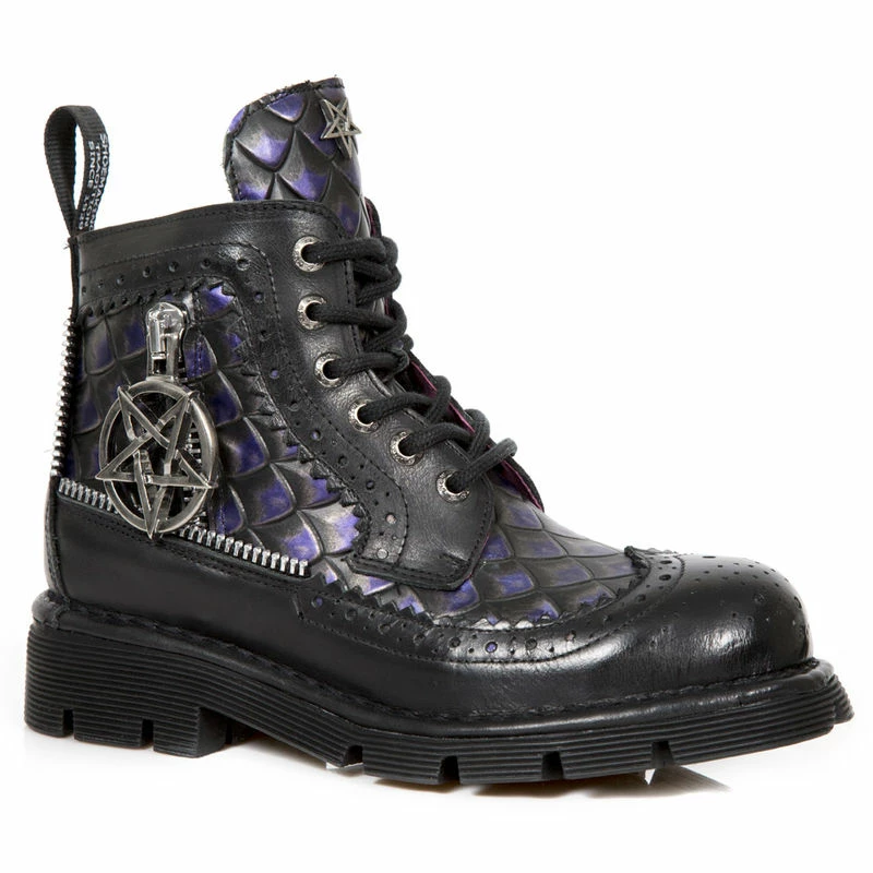 Sensationnelles chaussures en cuir noir et violet de type rangers