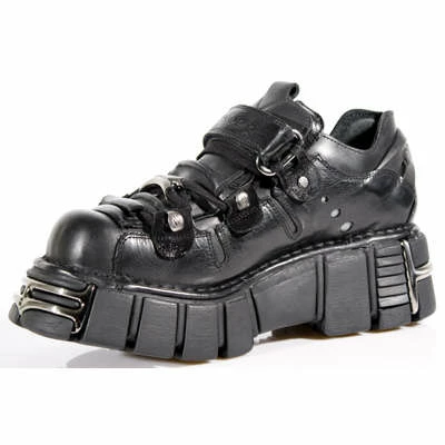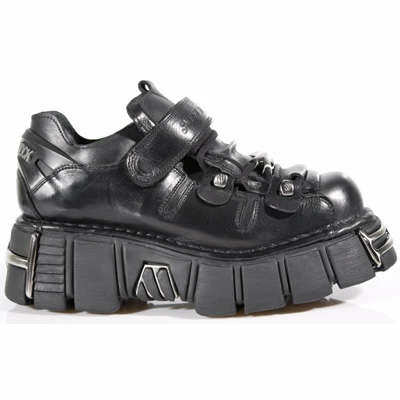ces chaussures basses sont agrémentées d’un laçage avant ainsi que d’une sangle à scratch, semelles tower de 5 cm avec fers intégrés, un style unique