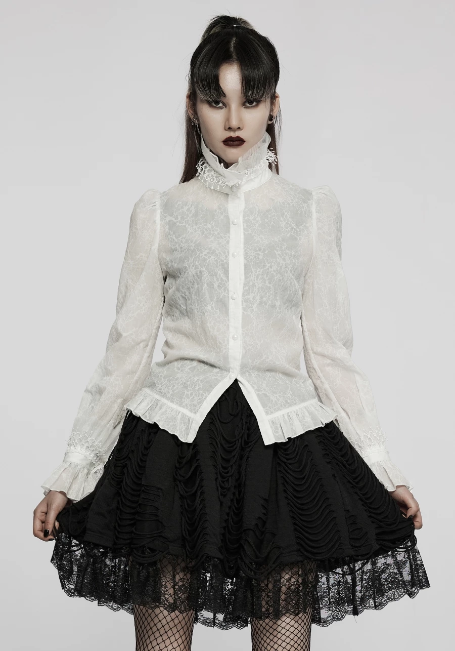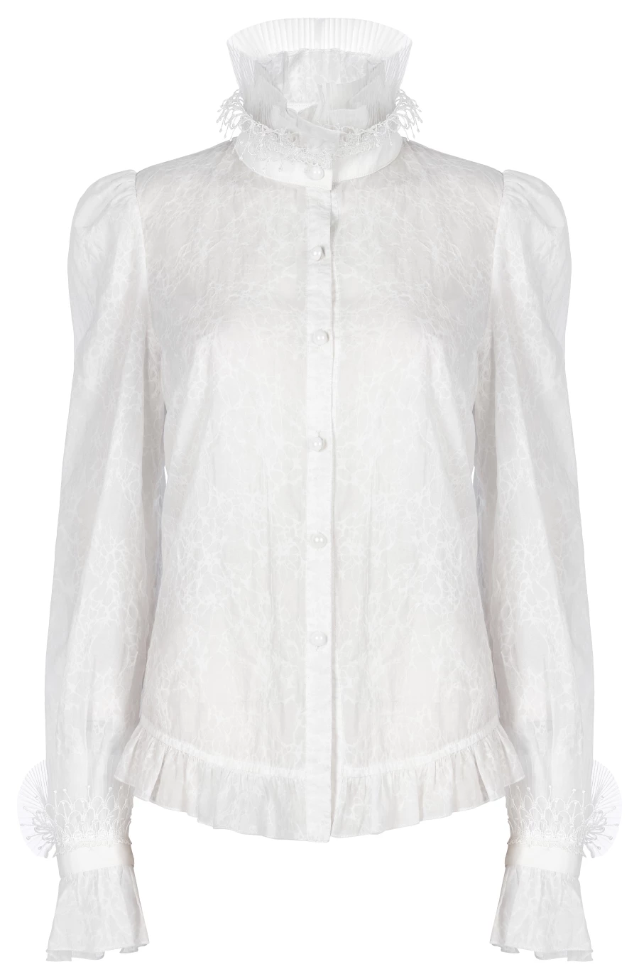 Col remontant en tissu plissé orné de broderies et de fine dentelle