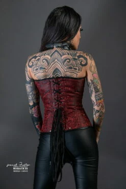 Grand serre-taille en tissu brocarde noir et rouge de grande qualité