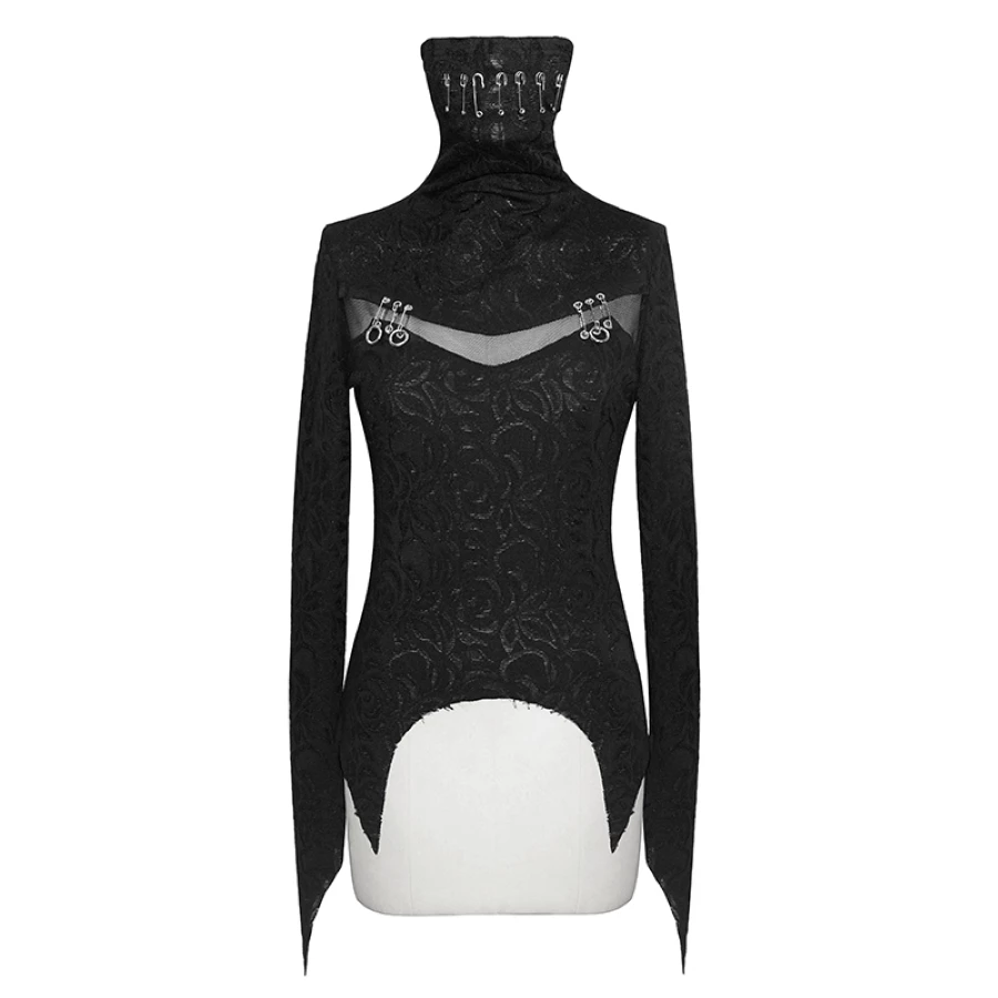 Ce pull noir est taillé dans un tissu légèrement transparent très original