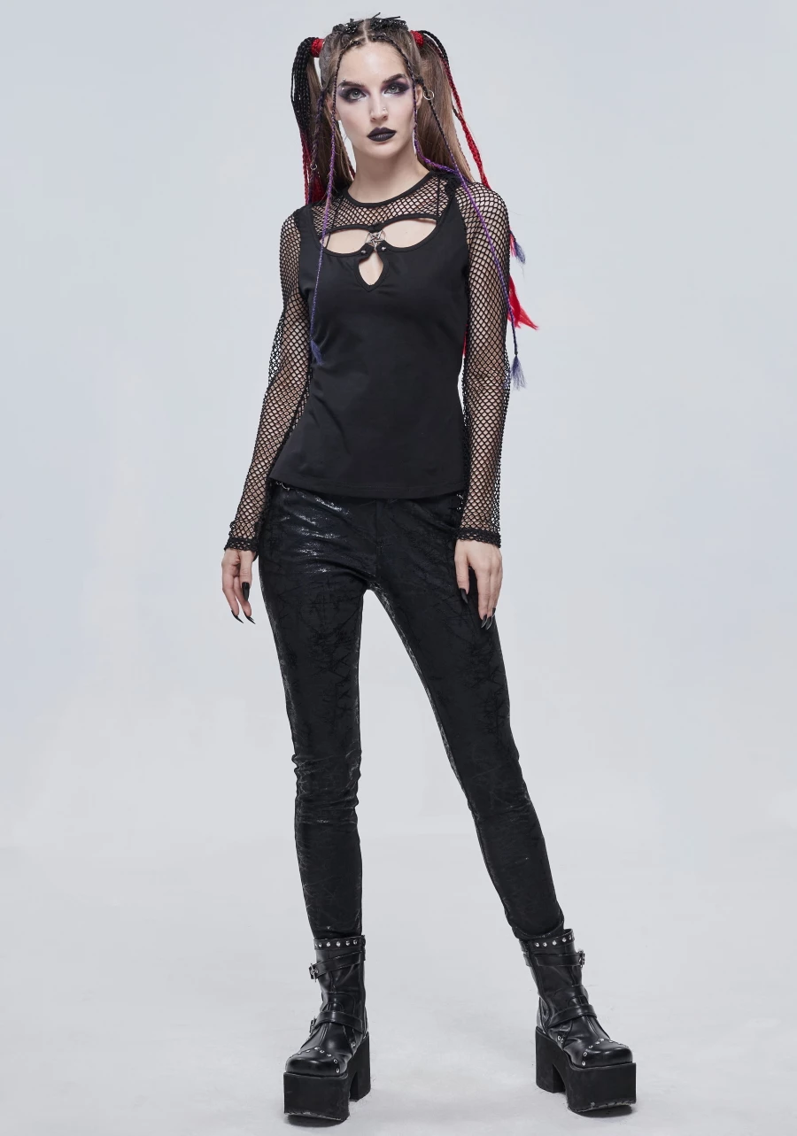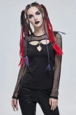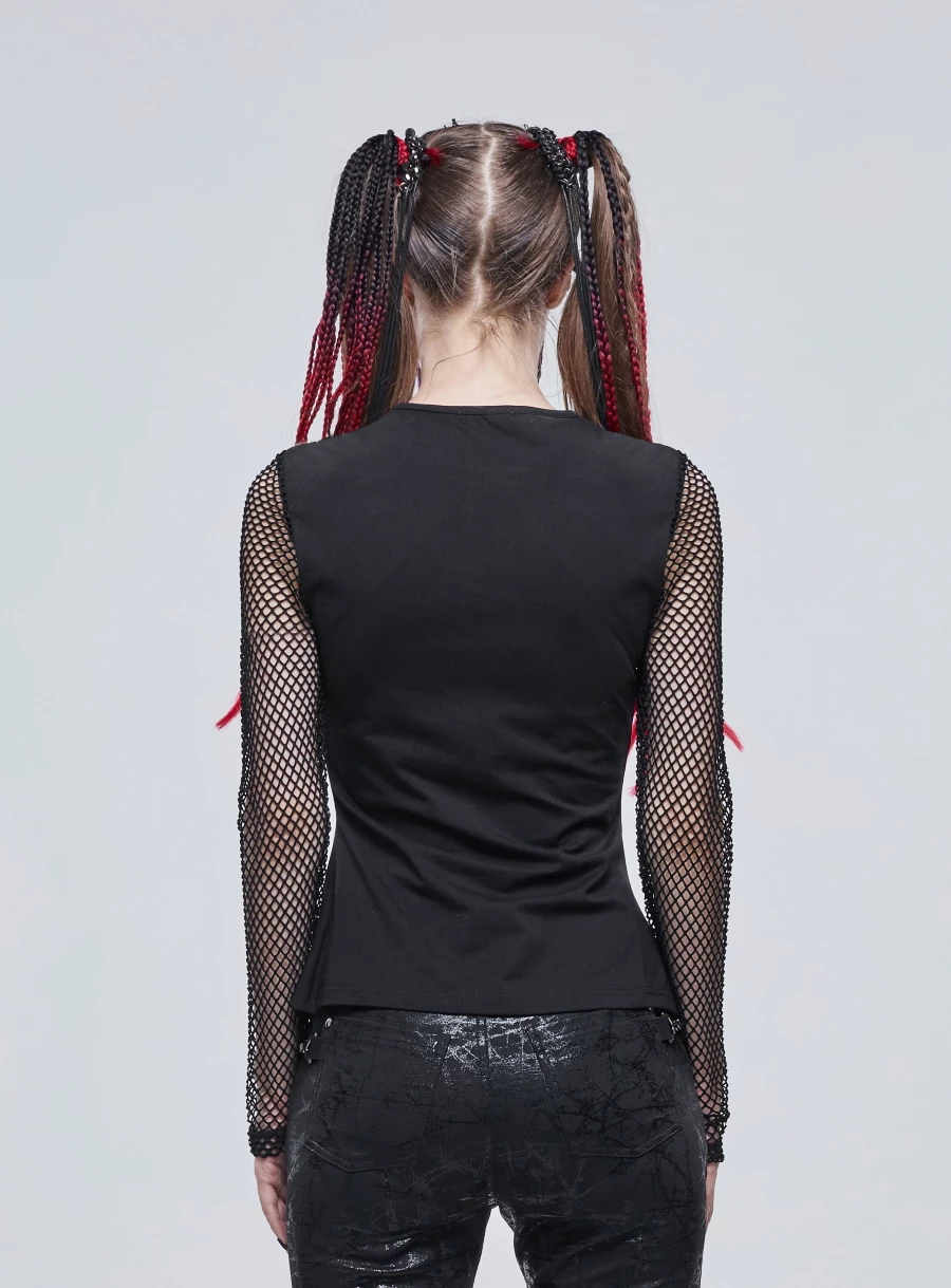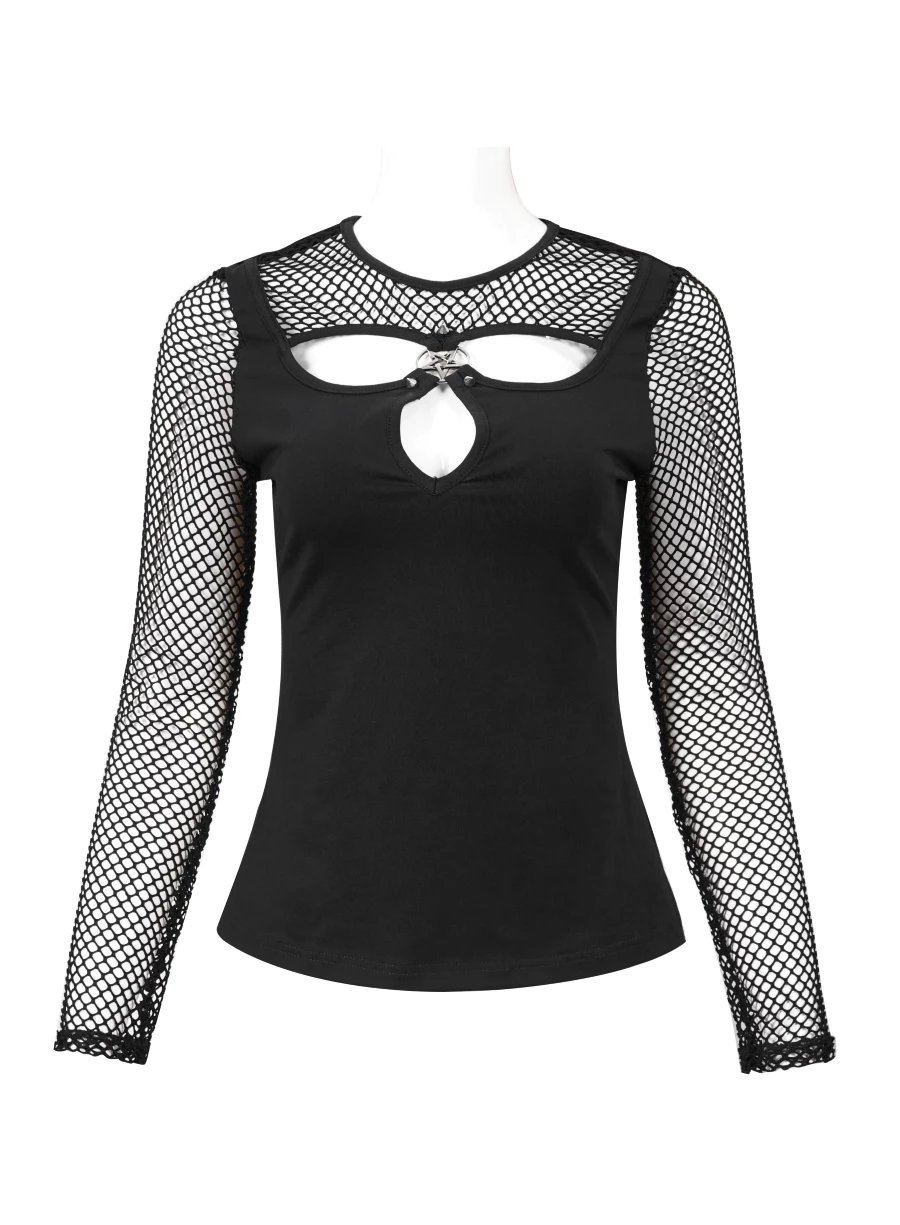 Ce haut gothique en coton léger possède des manches en tissu résille grosses mailles (tissu filet)