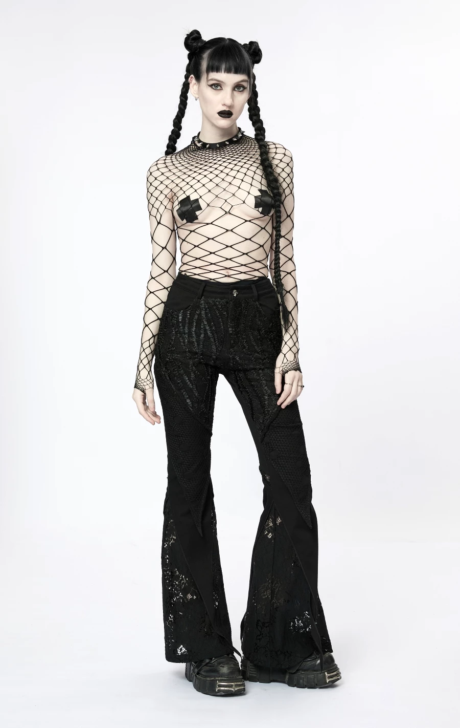 Ce haut manches longues signé Punk Rave est fabriqué en tissu mesh (résille) à mailles très extensibles