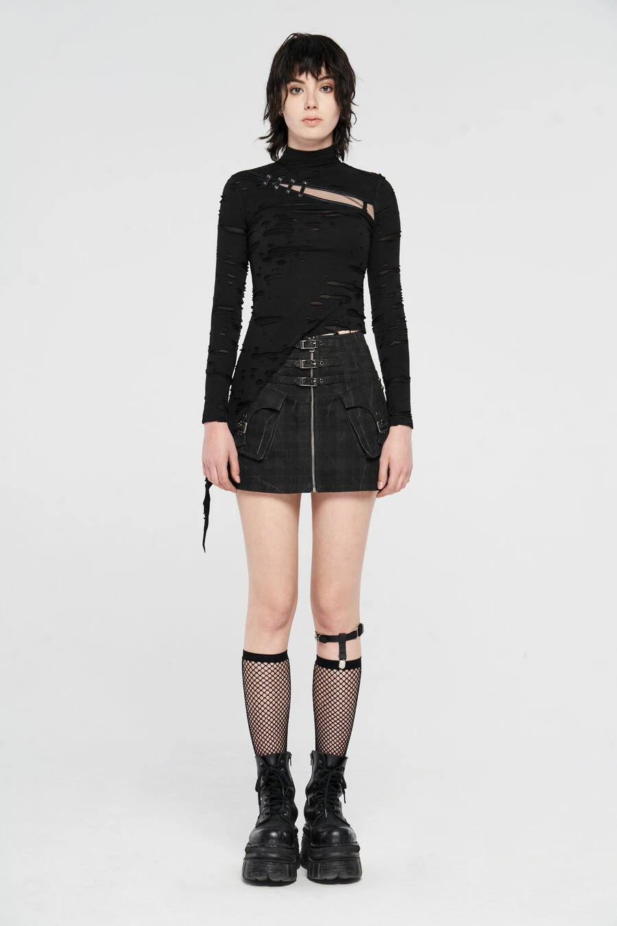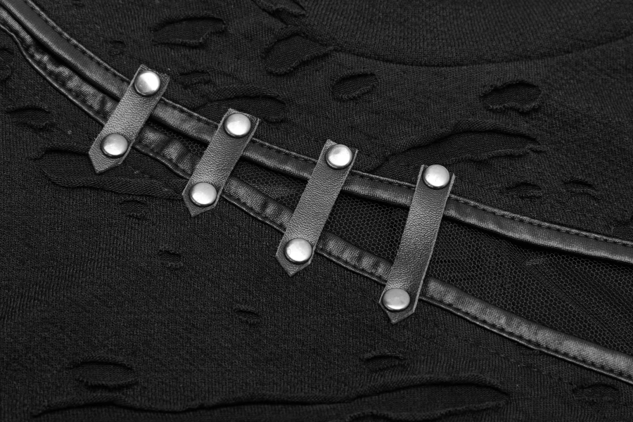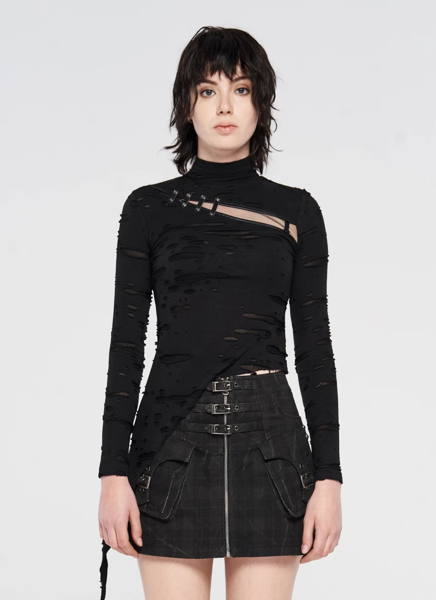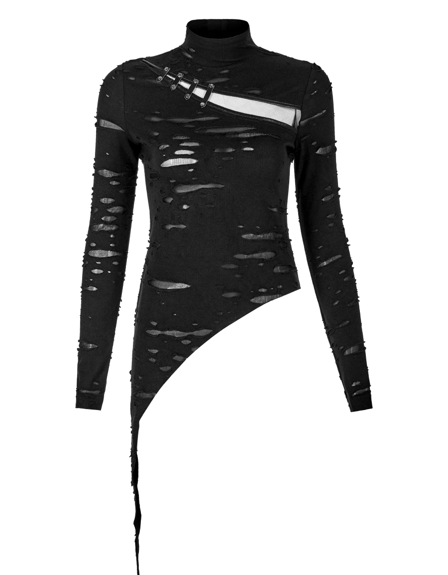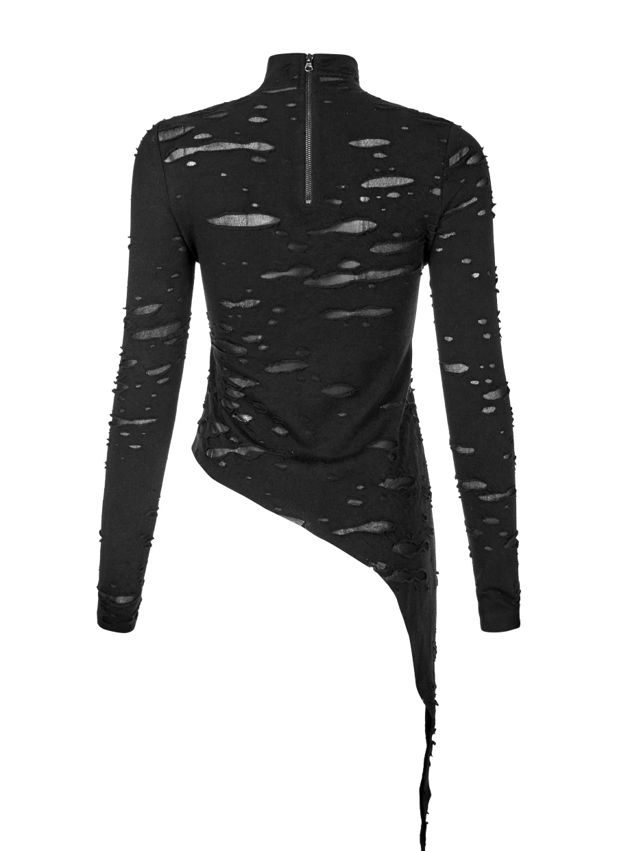 Ce haut manches longues Punk Rave est taillé dans un tissu souple et léger aux effets déchirés