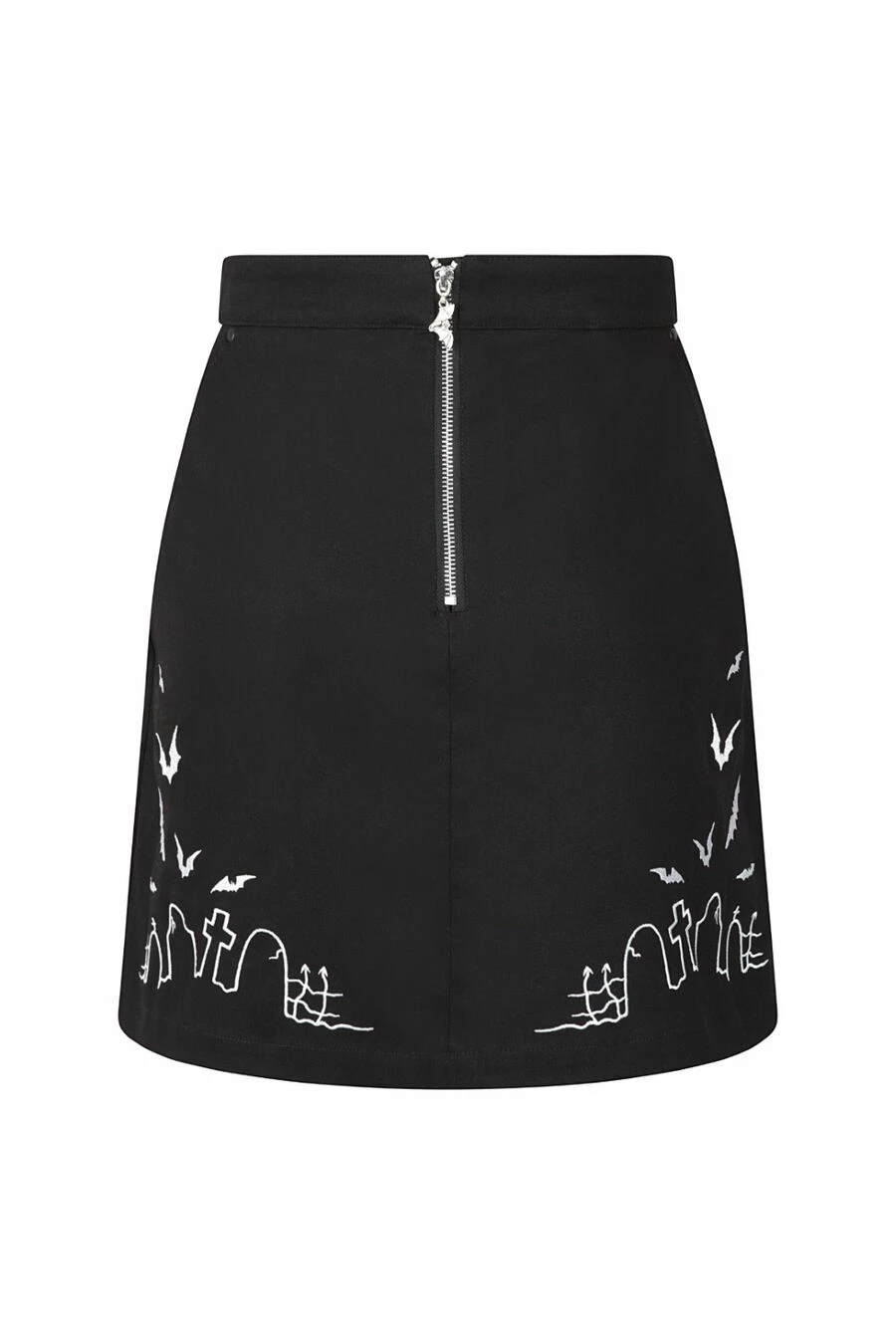 Motifs brodés sur le bas avec des tombes et des chauves-souris, le doute n’est plus permis vous êtes gothique !
