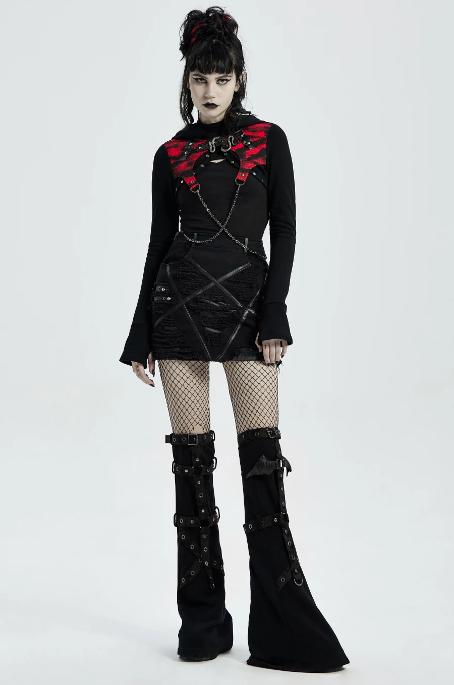 Larges liserets en simili cuir formant un pentagramme