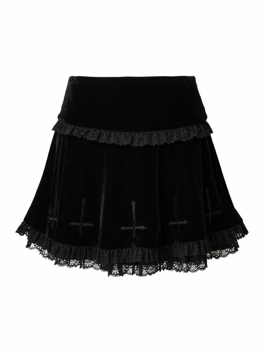 Elle est agrémentée de croix inversées brodées ton sur ton