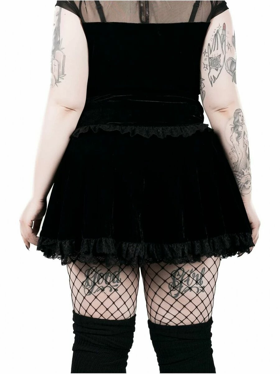 Cette jupe est composée d’un premier jupon de satin noir recouvert par un jupon de tulle bordé de dentelle, lme tout recouvert par un velours de grande qualité