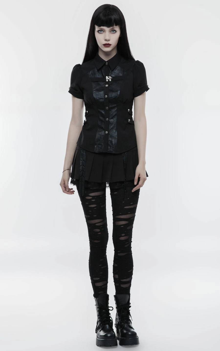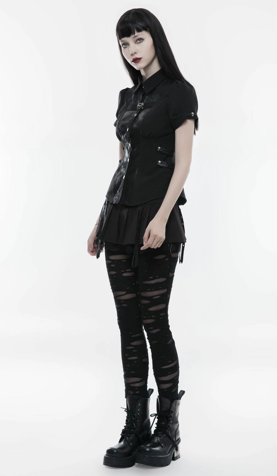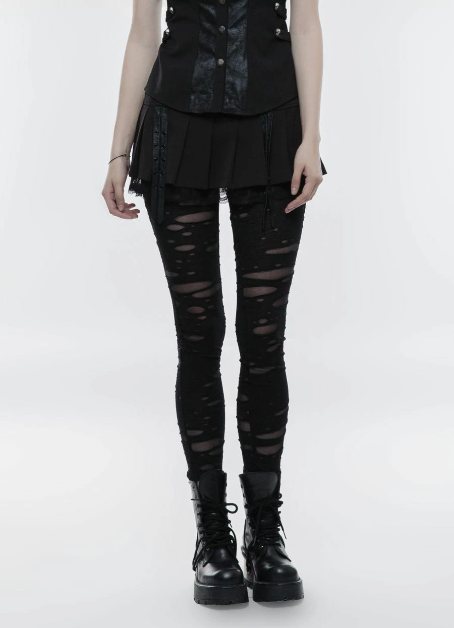 Leggings goth rock au style destroy avec ses effets déchirés, il possède du tulle très fin sous les déchirures pour ne pas avoir la peau directement à l’air, le confort en est ainsi grandement renforcé