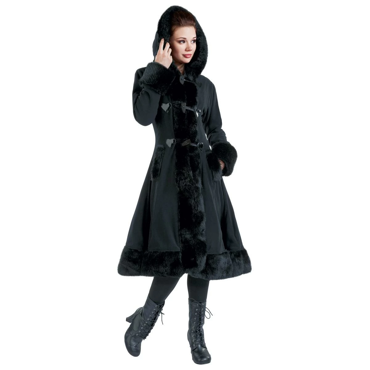 La fourrure synthétique coure également le long du manteau, sur le revers des manches et le bas du manteau