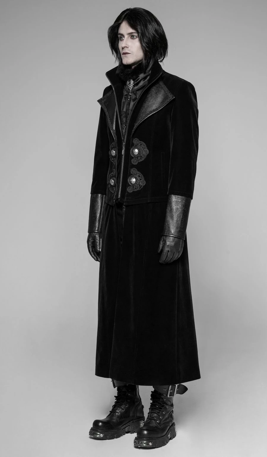 En version manteau ce modèle est dans le pur style gothique avec sa grande longueur et ce noir corbeau très profond