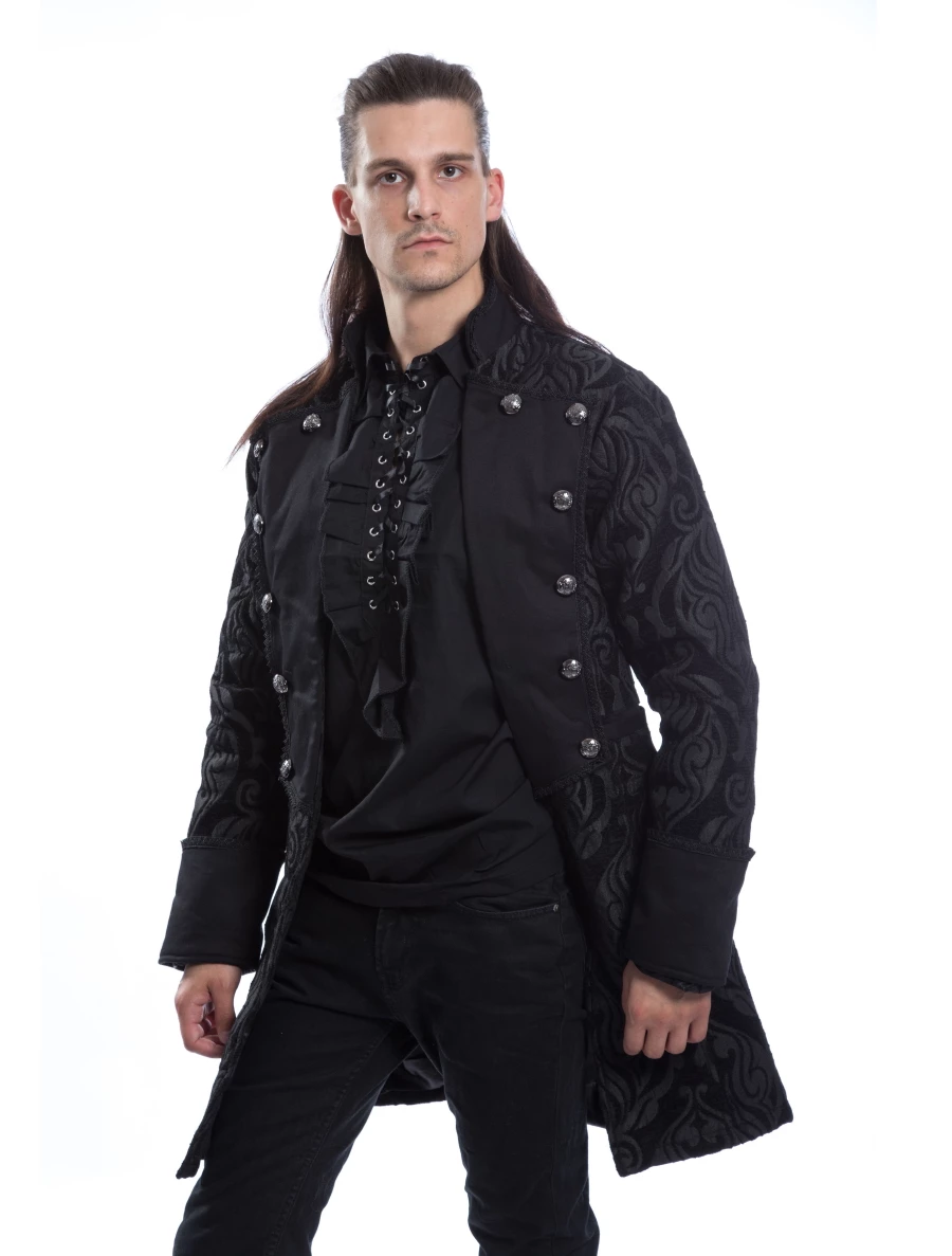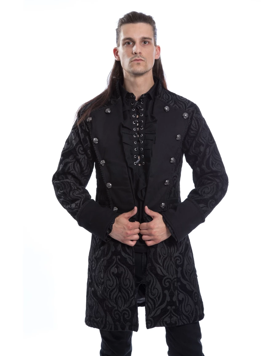 Très beau manteau gothique de type royaliste en tissu jacquard noir de grande qualité