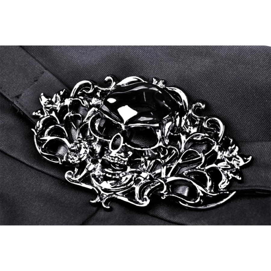 La jupe est ornée d’une grosse boucle en métal avec un énorme skull tenant une rose dans sa bouche