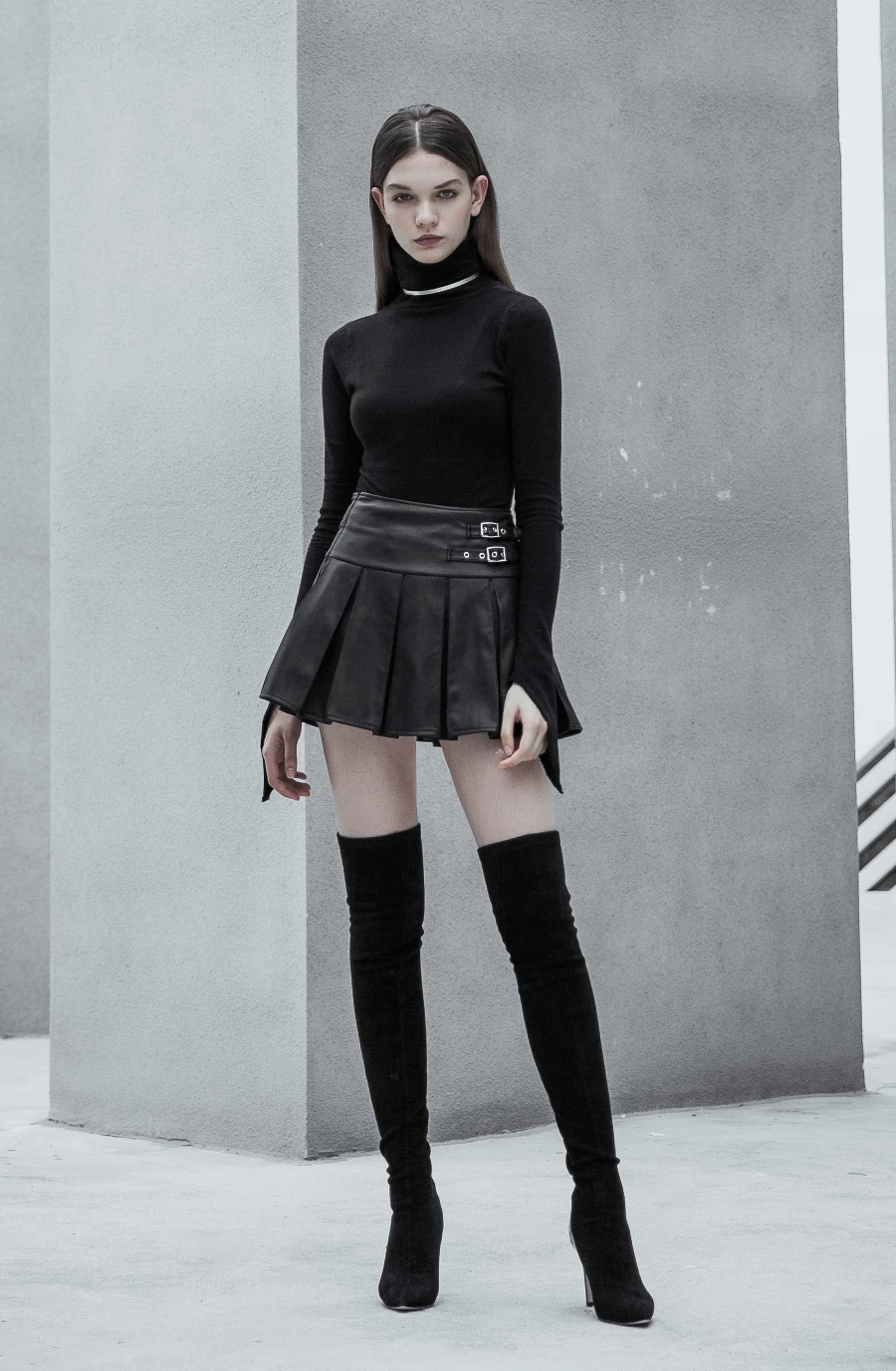 Belle jupe plissée en simili cuir noir de grande qualité signée Punk Rave