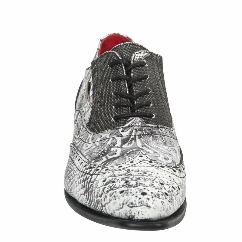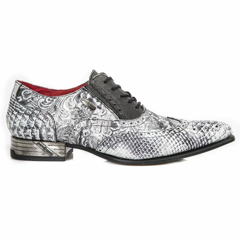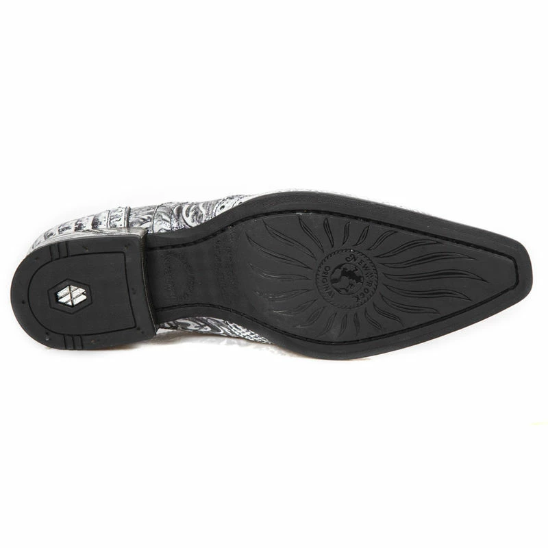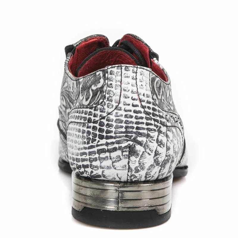 La déclinaison en cuir blanc grisé effet serpent est de toute beauté, les talons en métal apportent en plus la touche « rock’n’roll comme New Rock sais si bien le faire