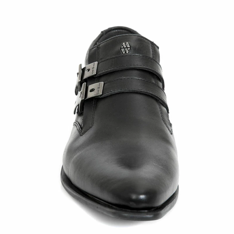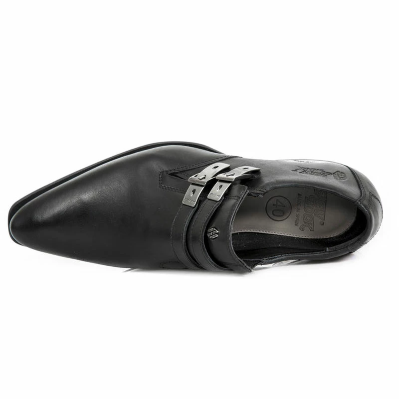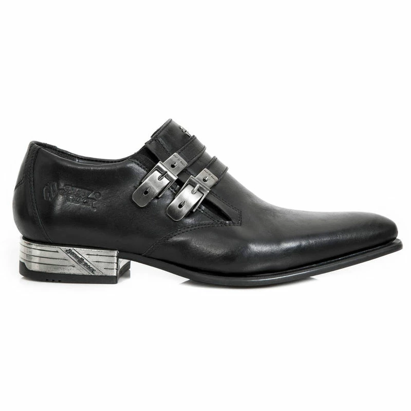 Deux boucles sur le coté de la chaussure et un talon en métal vieilli pour un look élégant et décalé