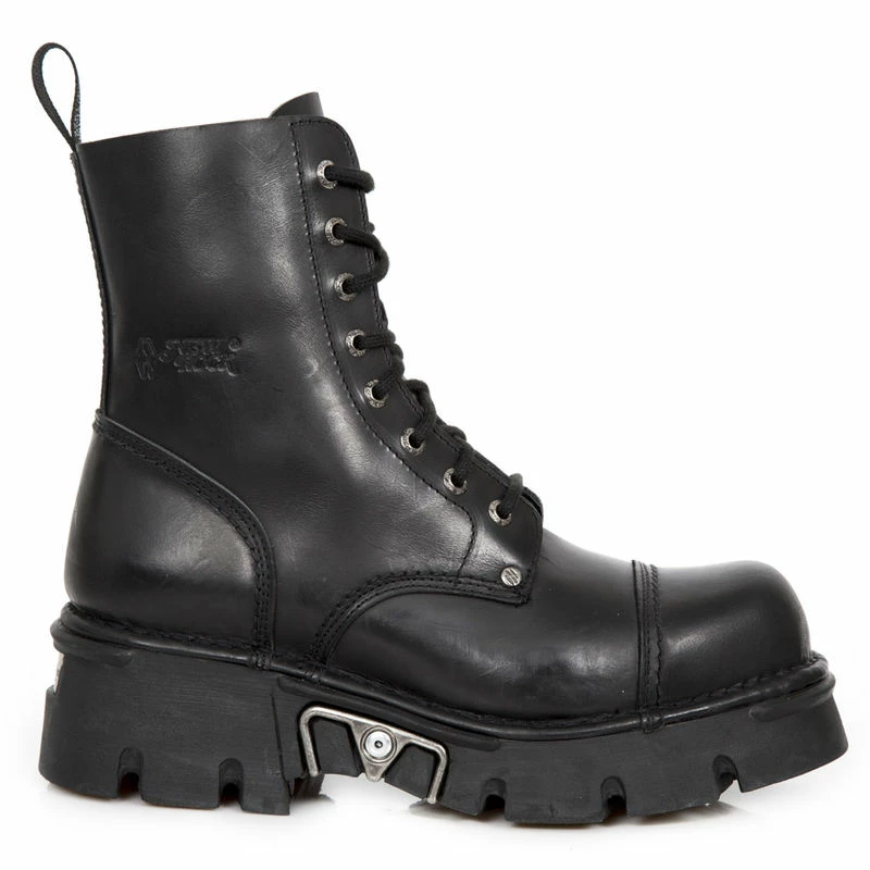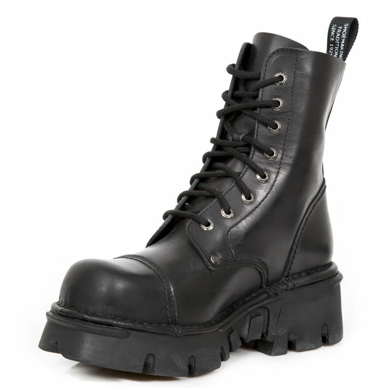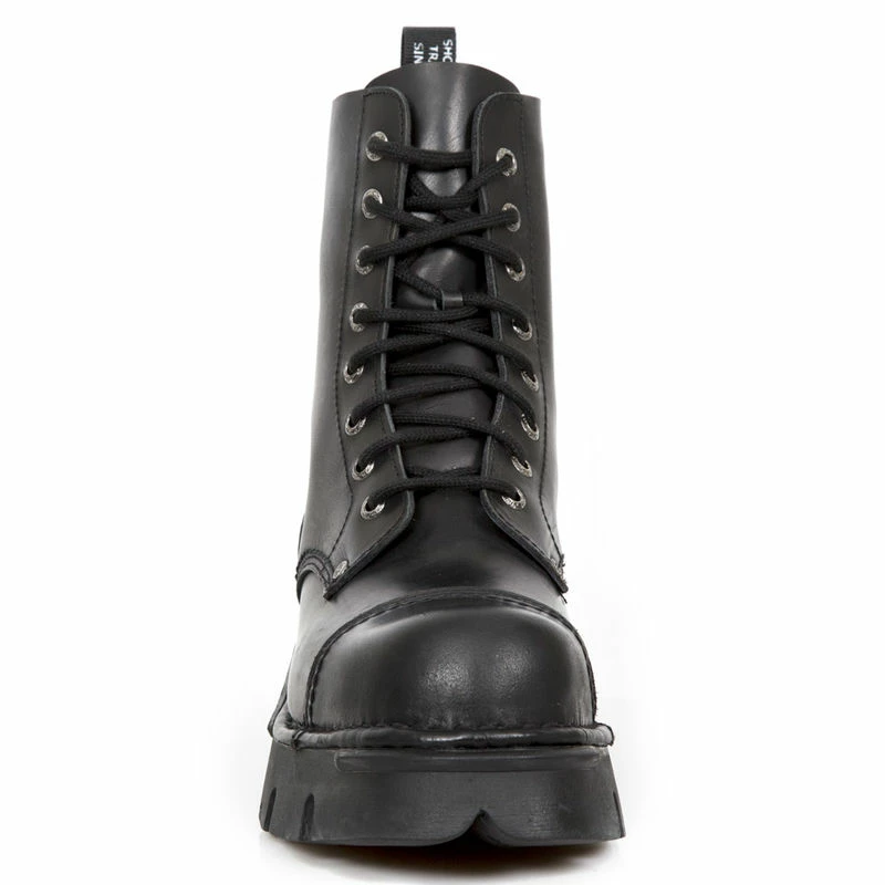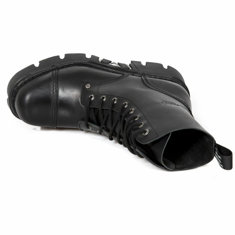 Top qualité pour ces bottines en cuir noir par New Rock avec laçage frontal