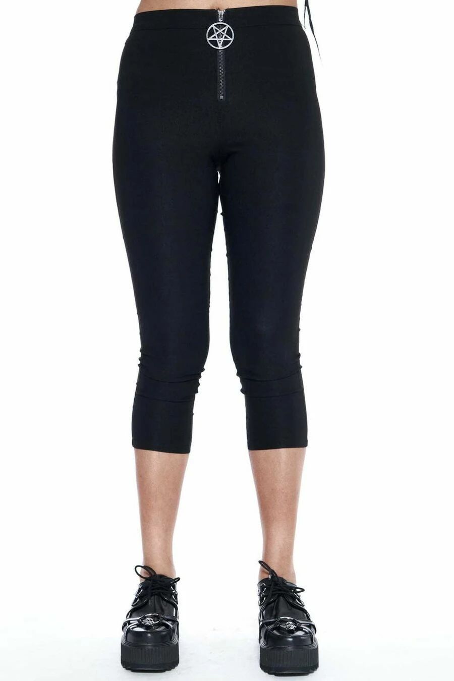 Dans un tissu super extensible qui épouse votre corps comme un leggings, il est orné de matériel pentagramme, d’une braguette zippée et de petites fentes à l’arrière.