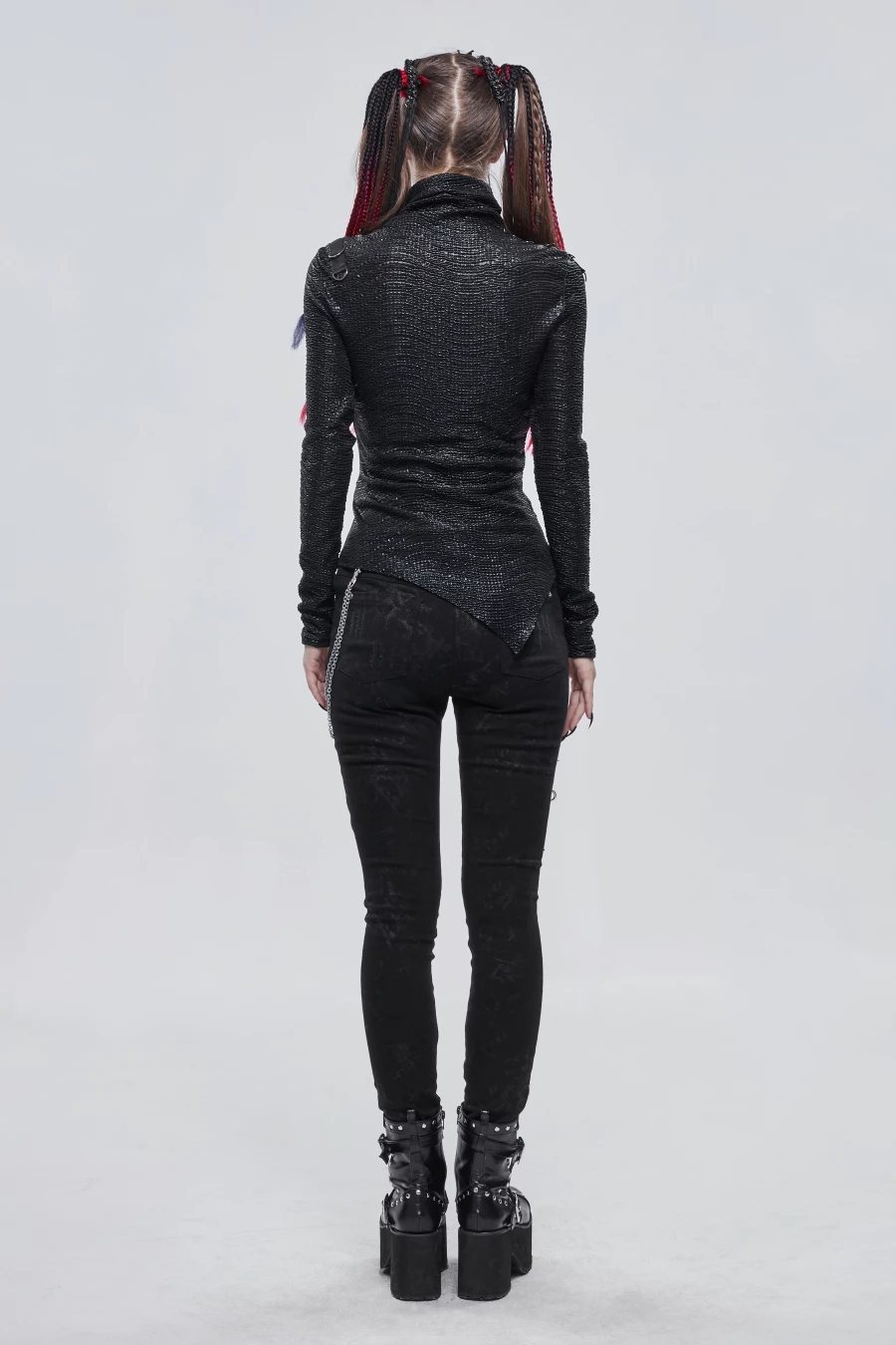 Ce pull signé Devil Fashion est fabriqué dans un tissu original à l’aspect brillant effet cote de maille