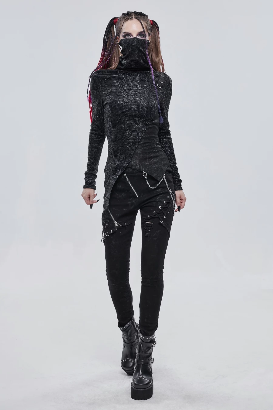Il possède une partie de tissu en coupe asymétrique légèrement transparant avec effet déchiré