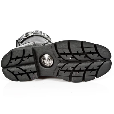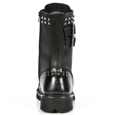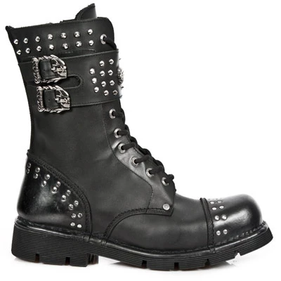 Ces rangers de très belle qualité sont agrémentées de nombreux rivets, 2 sangles avec boucles métalliques en tête de mort, semelle de 1,5 cm et talon de 3 cm, fermeture éclair intérieure.