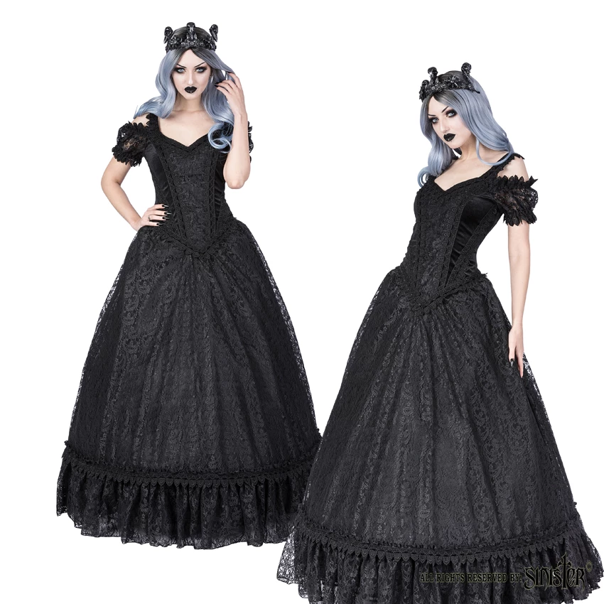 Somptueuse robe gothique de mariée avec un décolleté en diamant et des manches bouffantes élastiques en dentelle française