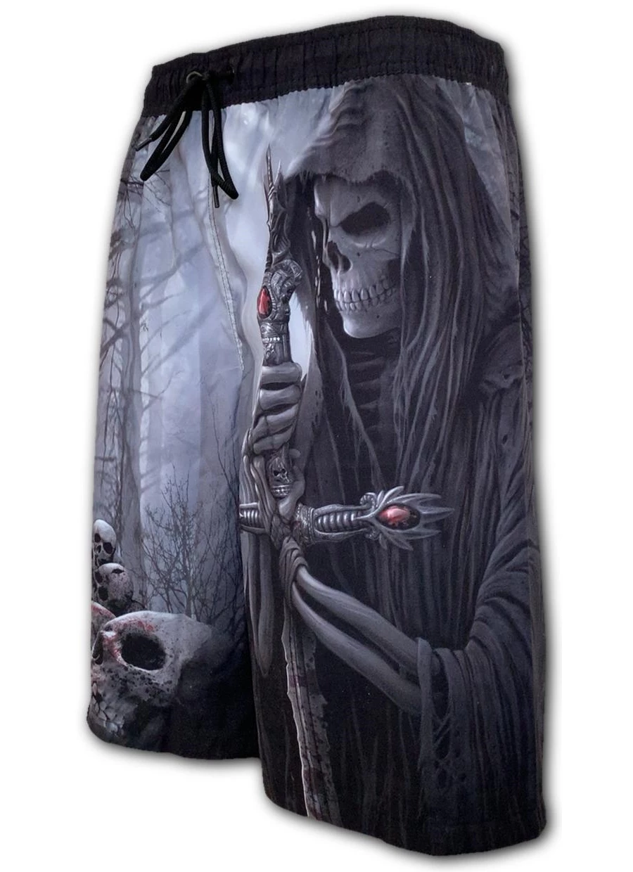 Imprimé all over avec le fameux reaper tenant son épée de la mort sur une jambe et le sol jonché de crânes humais sur l’autre jambe