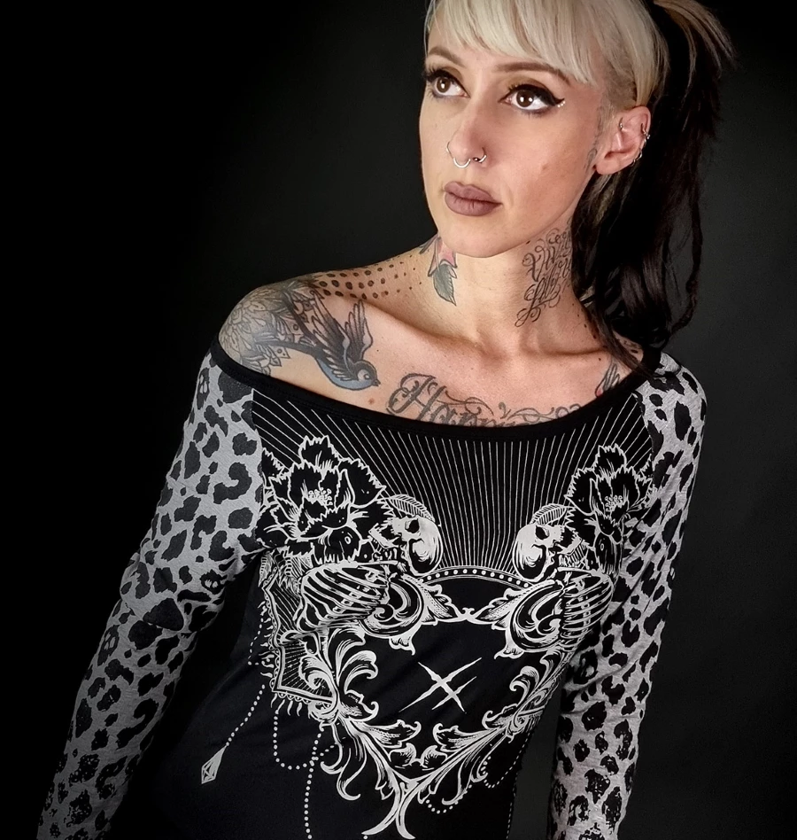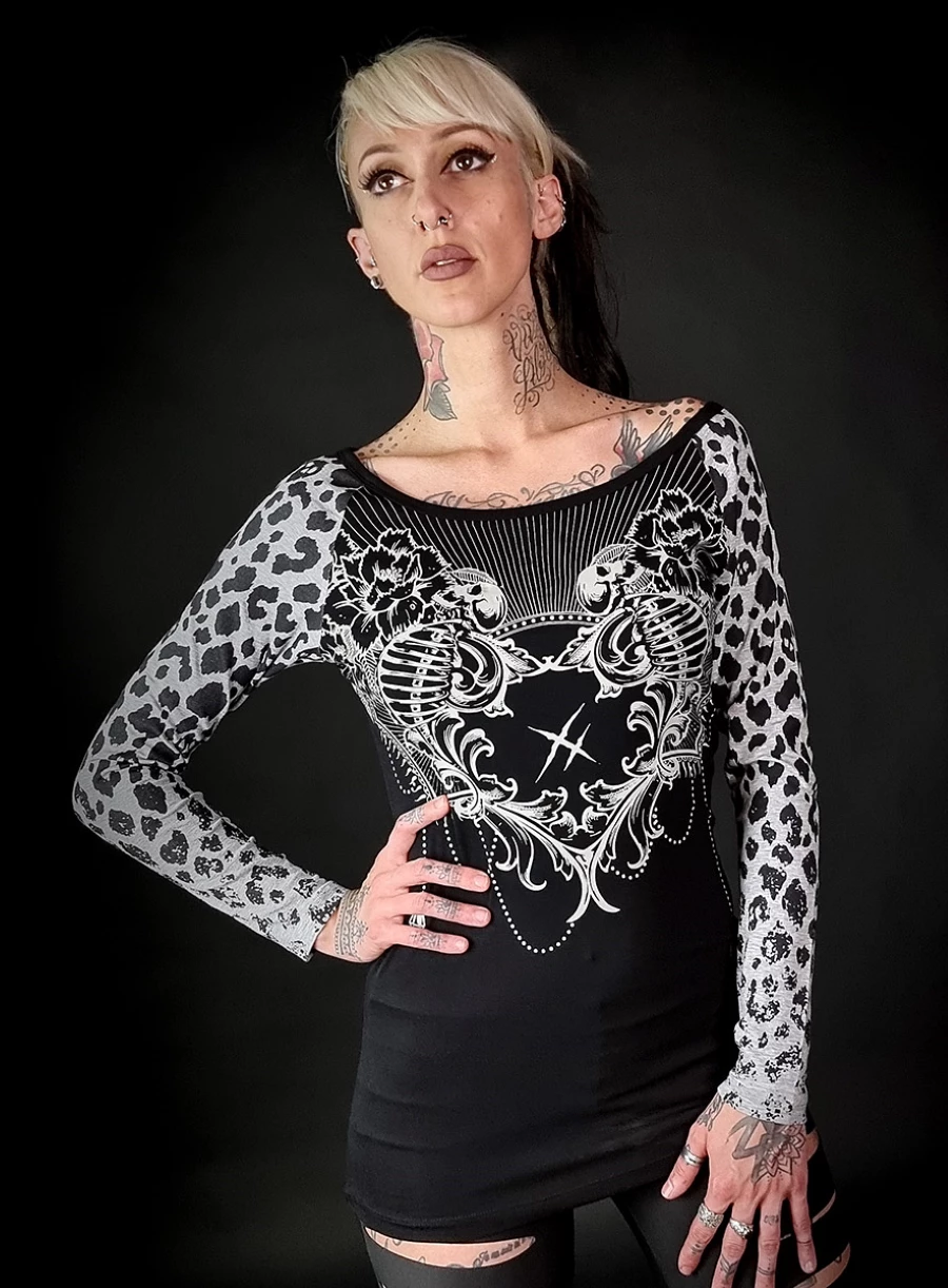 Corps noir et manches panthère noires et grises
