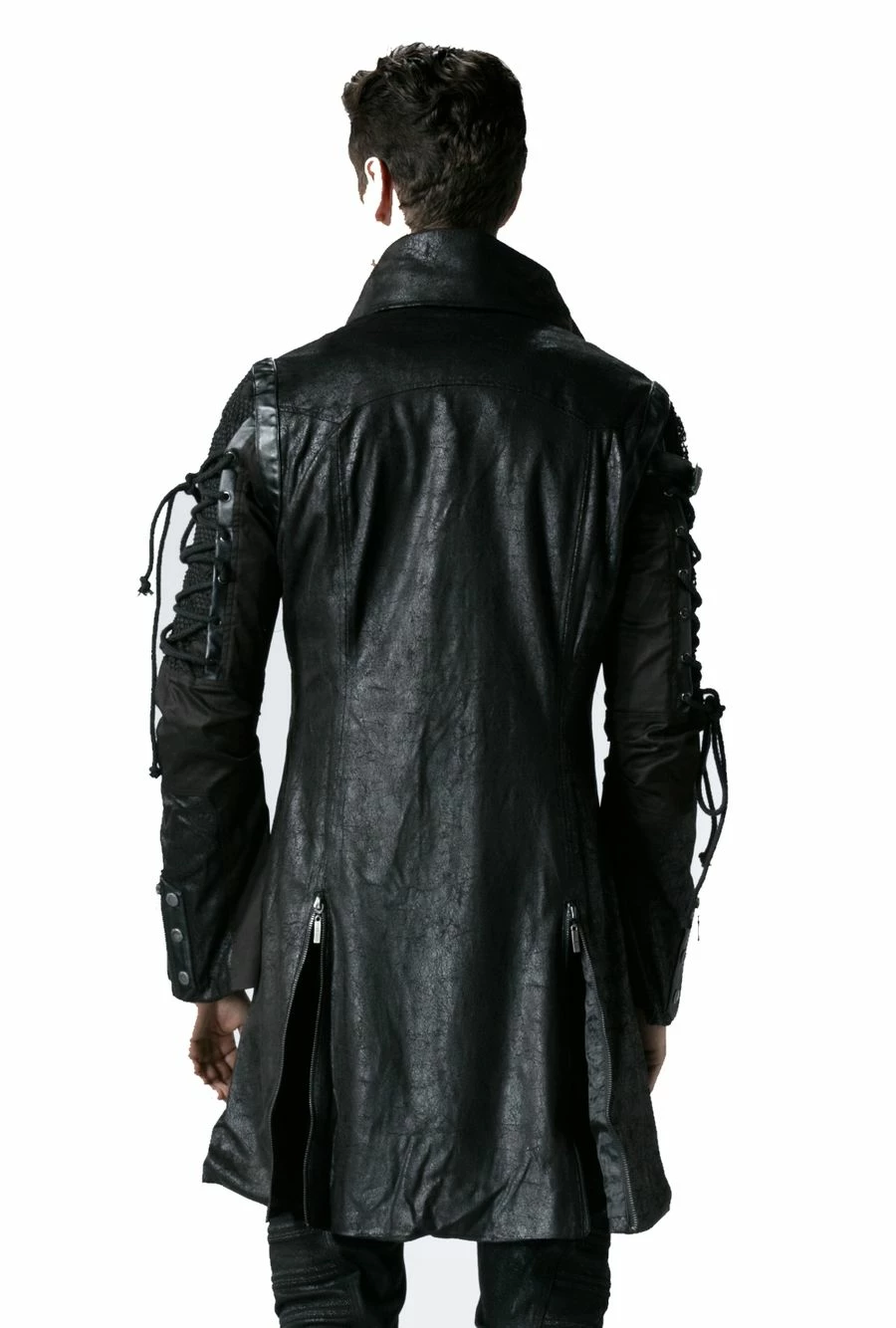 Veste dark goth en queue de pie en tissu effet cuir vieilli