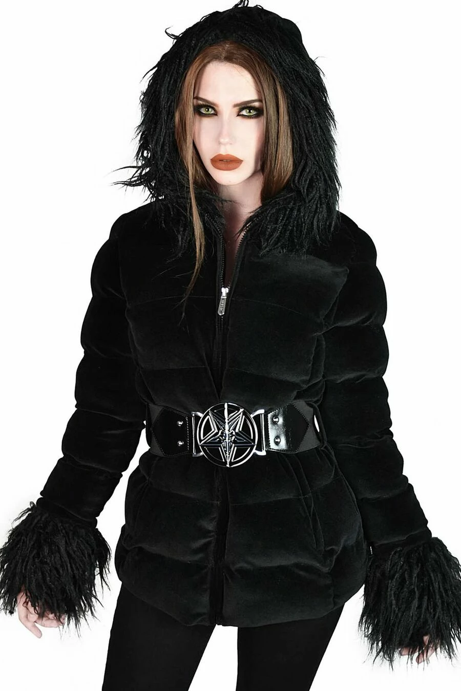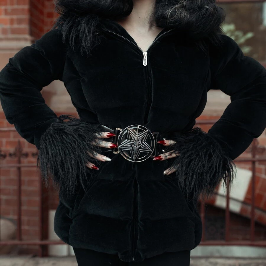 La veste est accompagnée de sa ceinture élastique amovible avec boucle en métal « Baphomet »