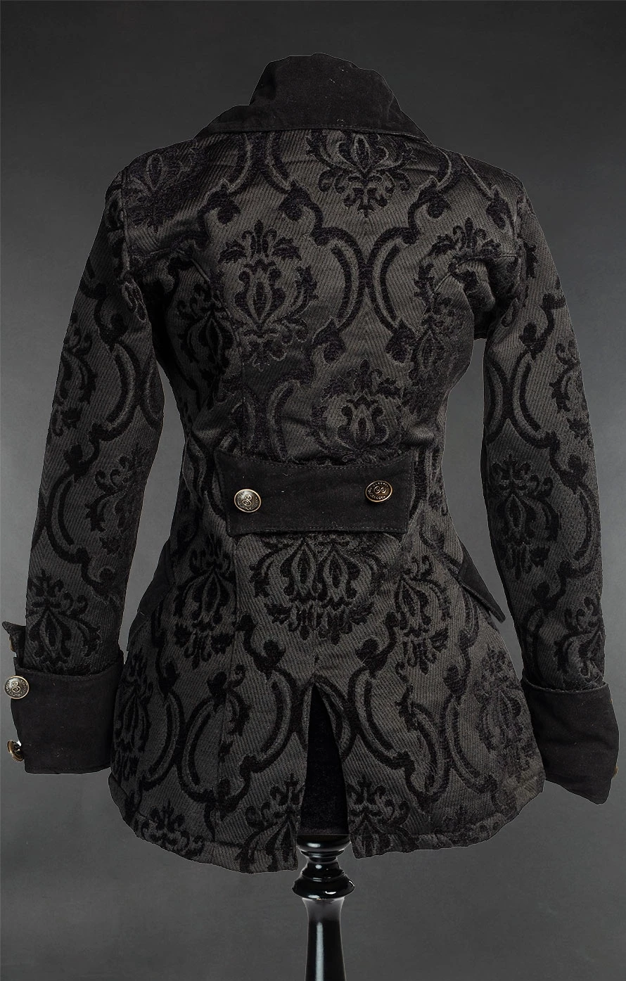 Superbe veste victorienne femme style pirate en tissu brocarde noir